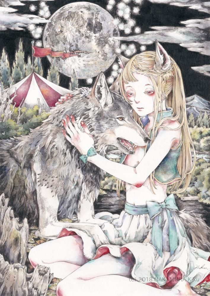 ★★★中村キク 大阪芸術大学在学中に銅版画を専攻。モノクロの鉛筆画を経て、色彩を得た抒情画は、ますます多くの鑑賞者をひきつけている。宮木あや子の小説『ヴィオレッタの尖骨』(2017、河出書房新社)では装画を手掛けた。