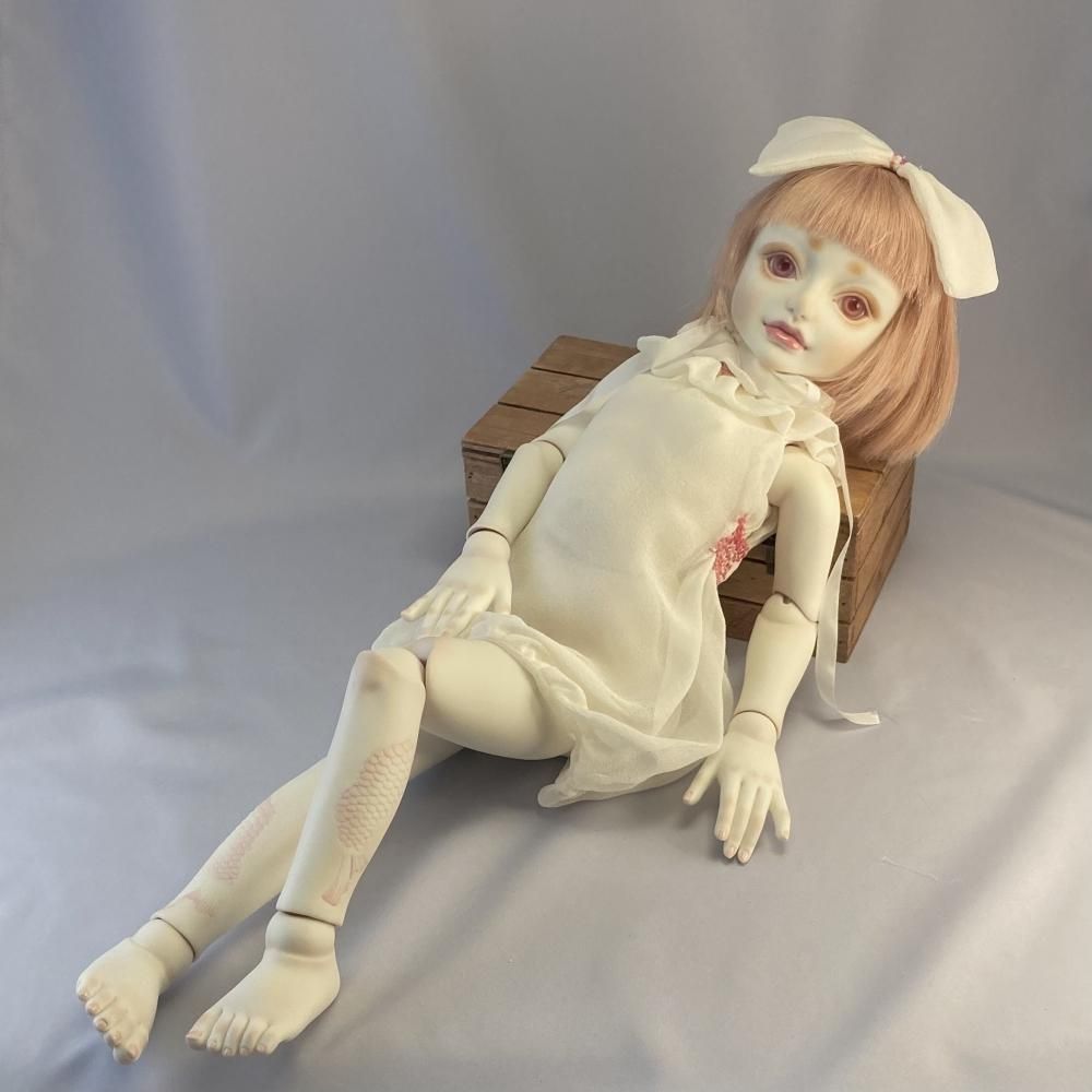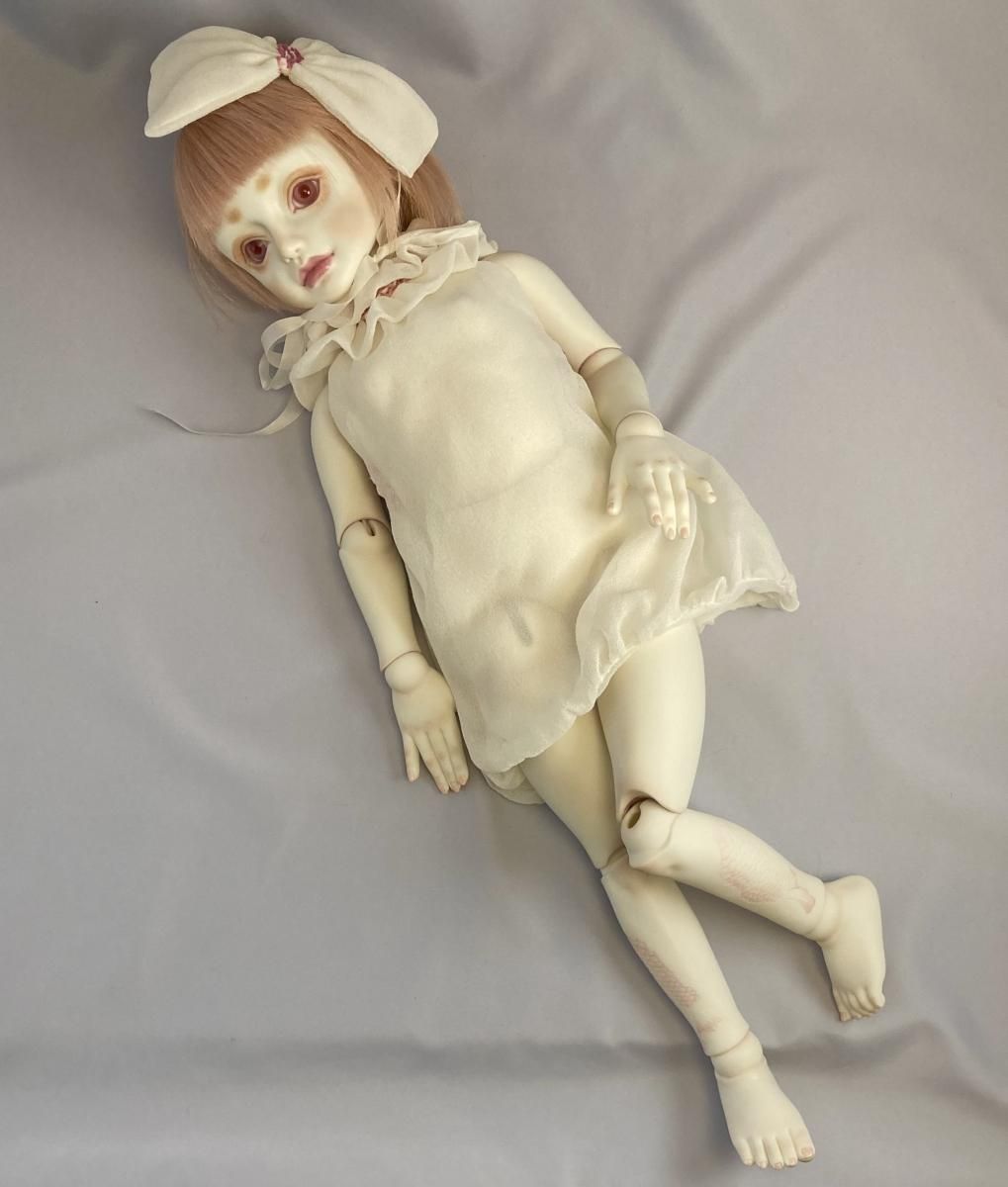★★★羽鳥聖子 2000年頃より人形制作を始める。各地の展覧会に精力的に作品を発表するほか、名古屋市内でビスクドール教室を主宰している。ビスクは特徴的な透け感を持ち、華やかな顔立ちにニュアンスを与えている。