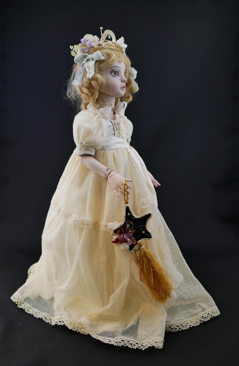 *本作品はビスクドールと呼ばれる磁器で制作された人形です。落下等の衝撃には弱いので取り扱いにご注意ください。