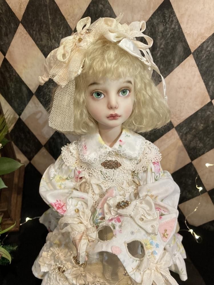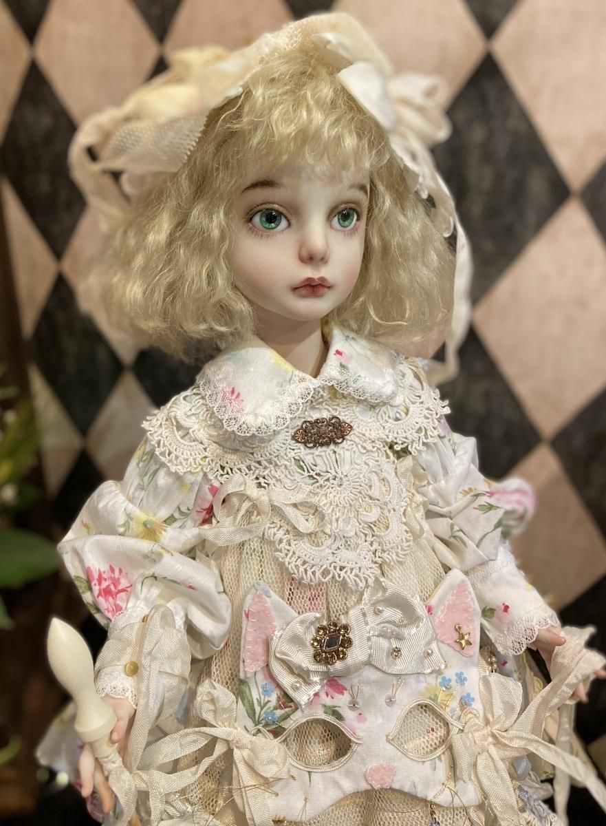 ★★★坂東可菜 2004年頃より大山冨美子に師事。2008年からビスク制作を始める。複雑な着彩と満載の装飾が唯一無二の作品を生み出している。