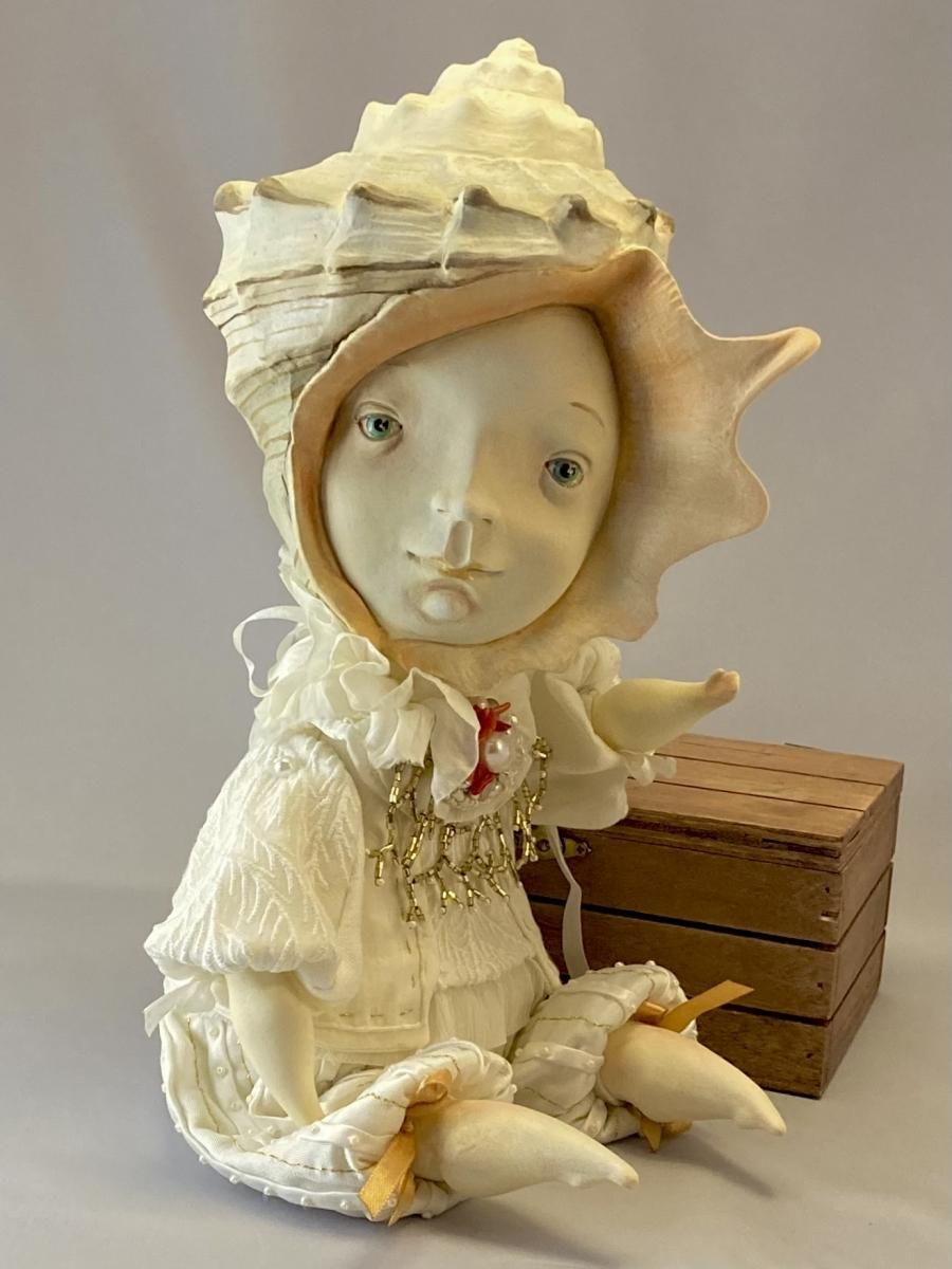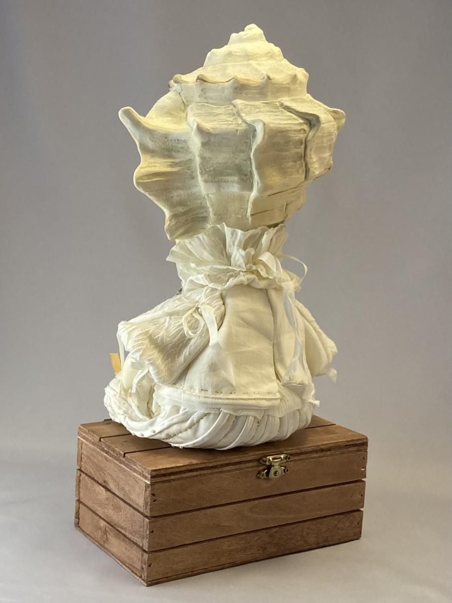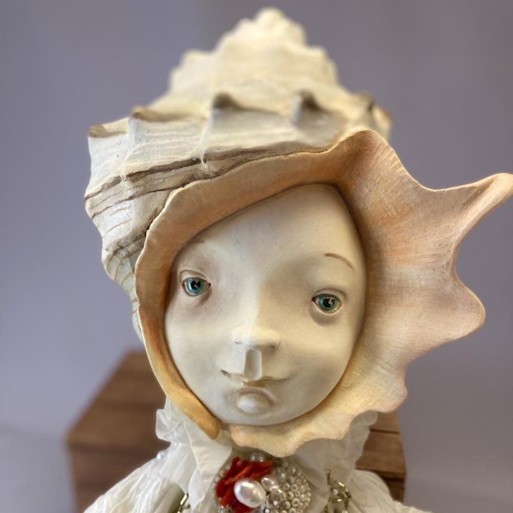 石塑粘土による巻き貝の、美しい造形が目をひく作品。