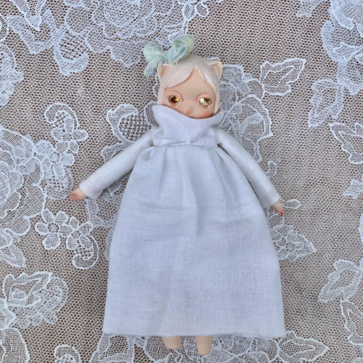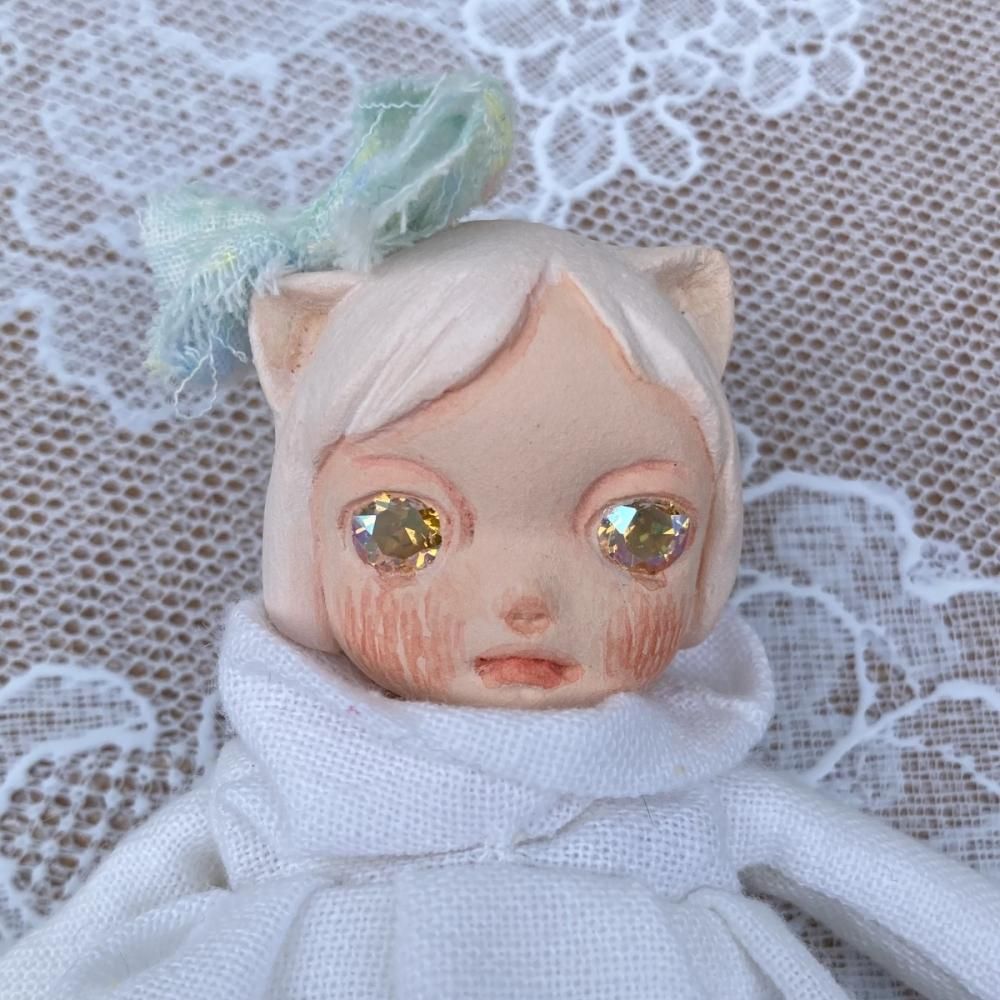 素材詳細:フォルモ、顔彩、布、綿、スワロフスキー、uvコート。