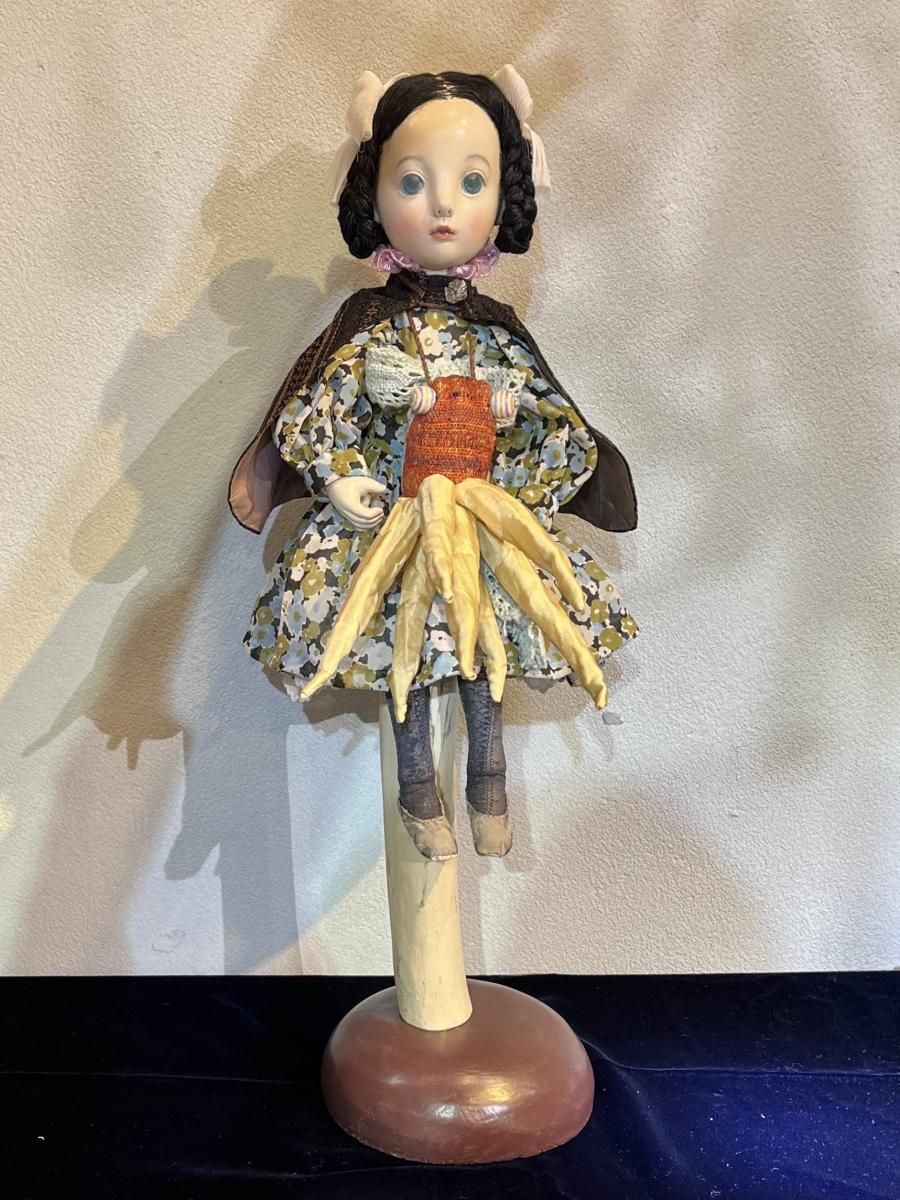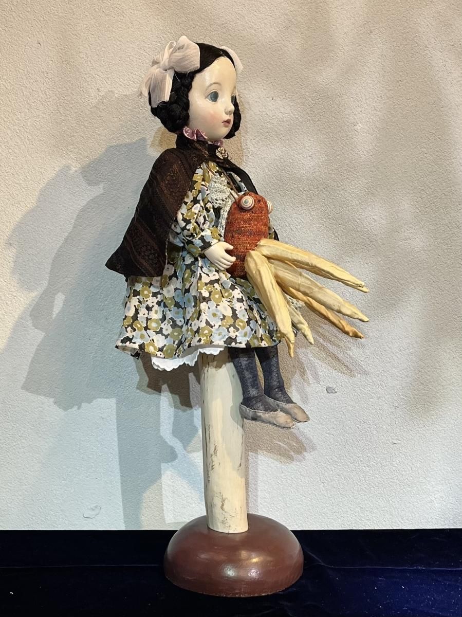 素材詳細:オーブン陶土、絹糸、木材、油彩ほか