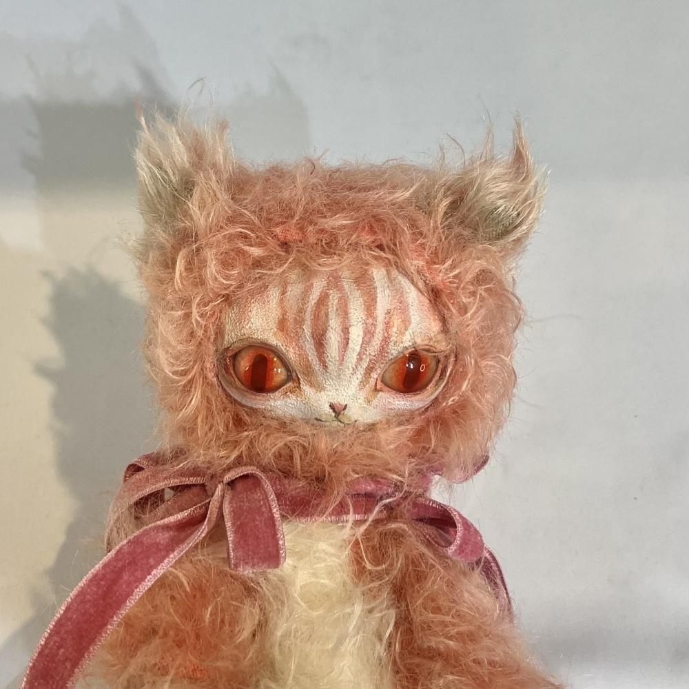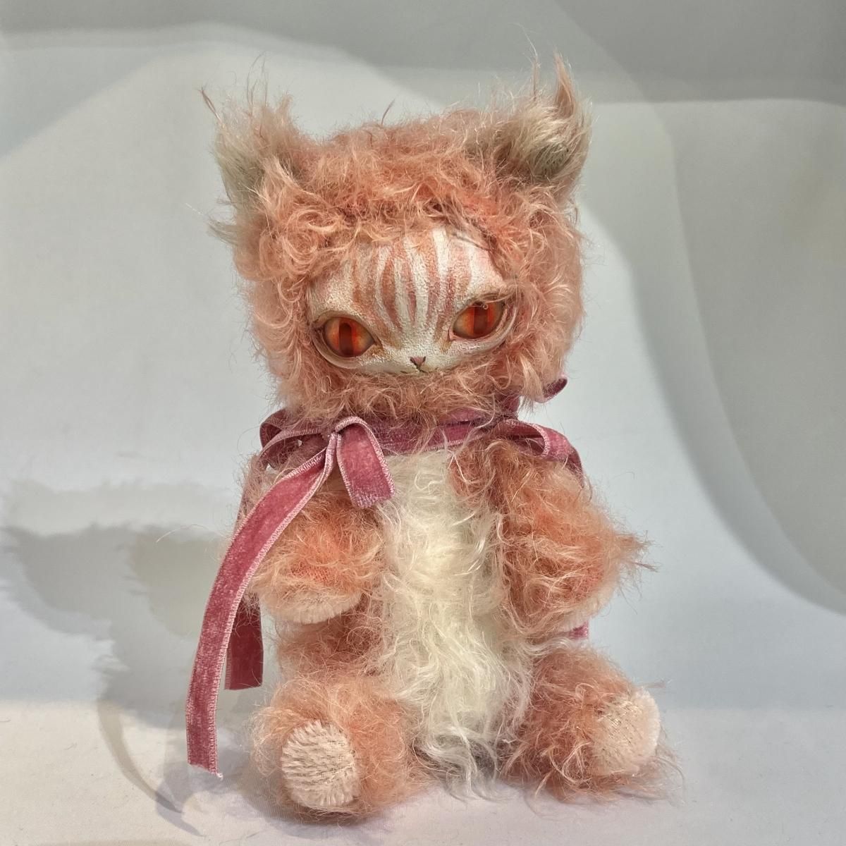 素材詳細:石塑粘土・モヘア・グラスアイ・油彩・ステンレスボール
