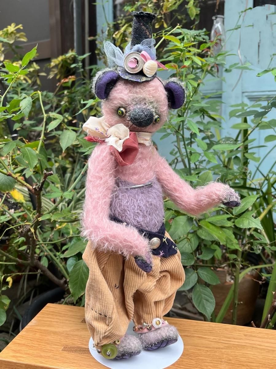 素材詳細:ジャーマンモヘア、木綿、ペレット、おがくず、シンコヴスカヤのグラスアイ、5ジョイント。パステル彩色。