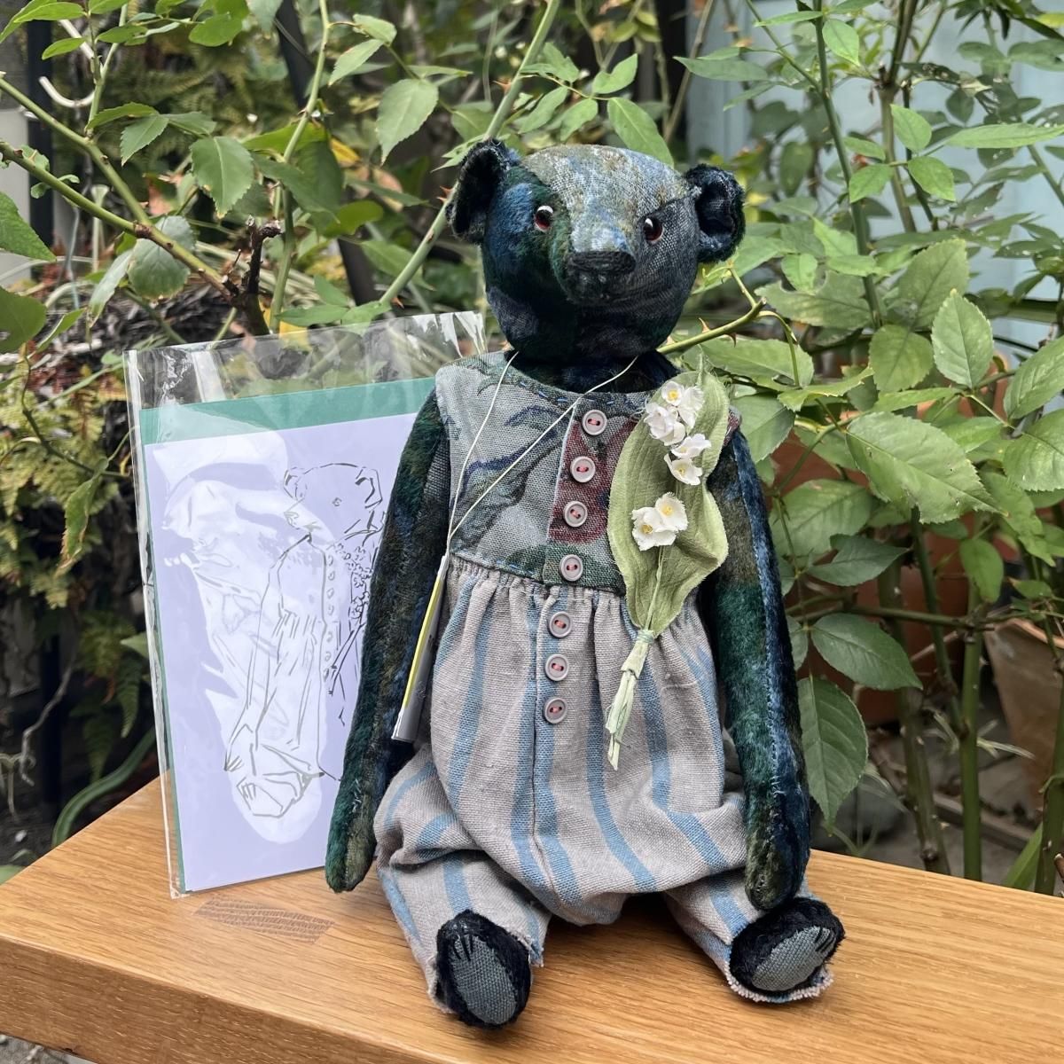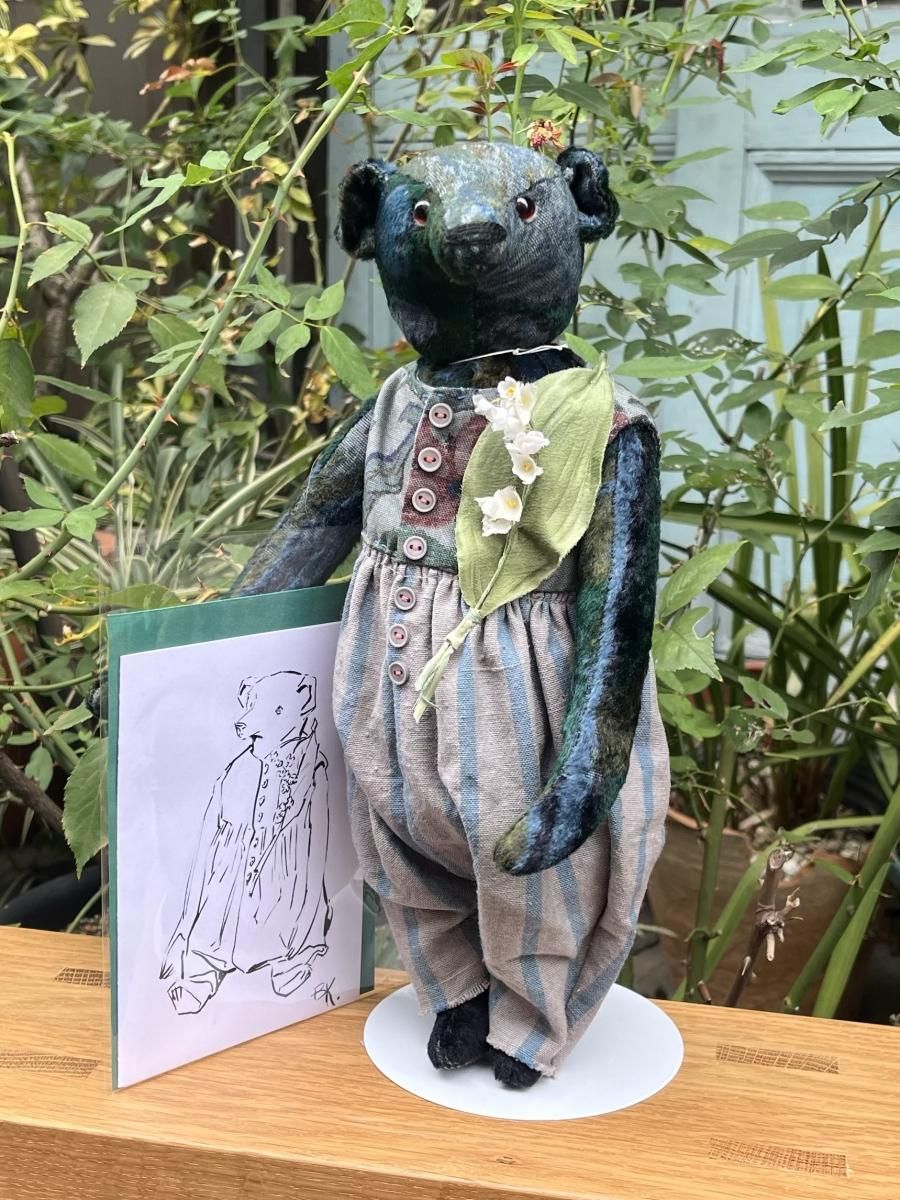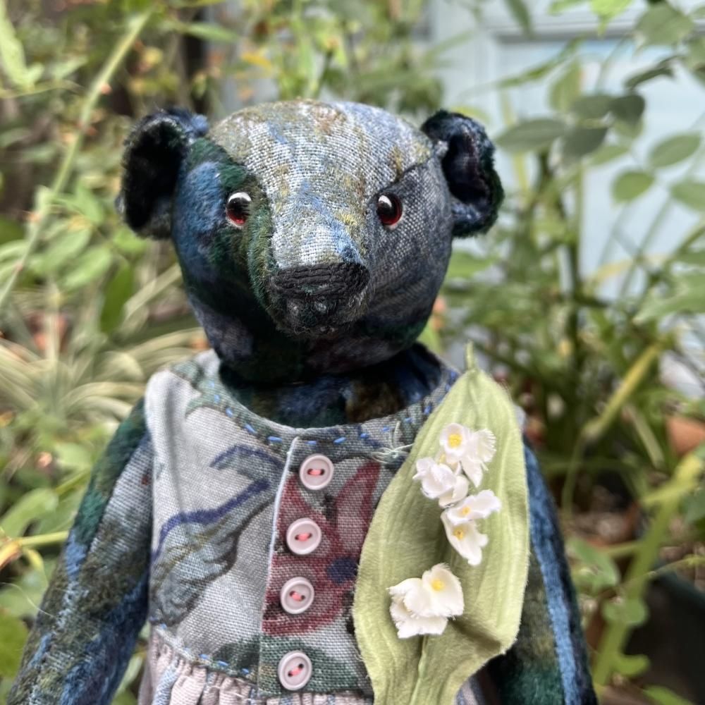 素材詳細:ヴィンテージの起毛、グラスアイ、おがくず、自作布花
