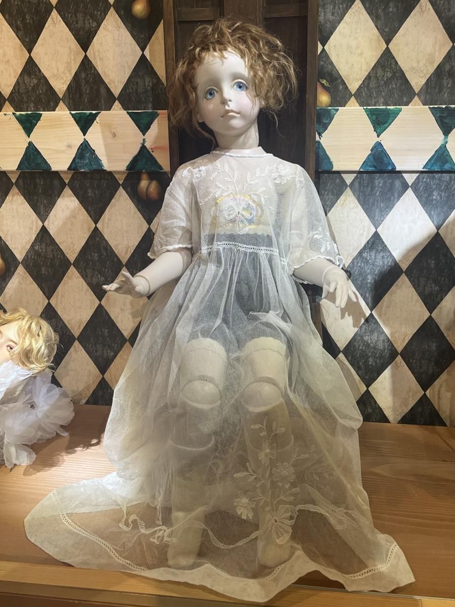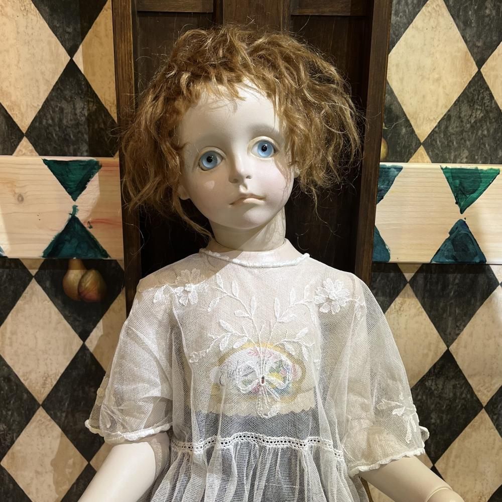 素材詳細:石塑粘土、麻、革、化繊わた、 ガラスペレット、ヴィンテージモヘア ウィッグ、グラスアイ 、アンティークベビードレス